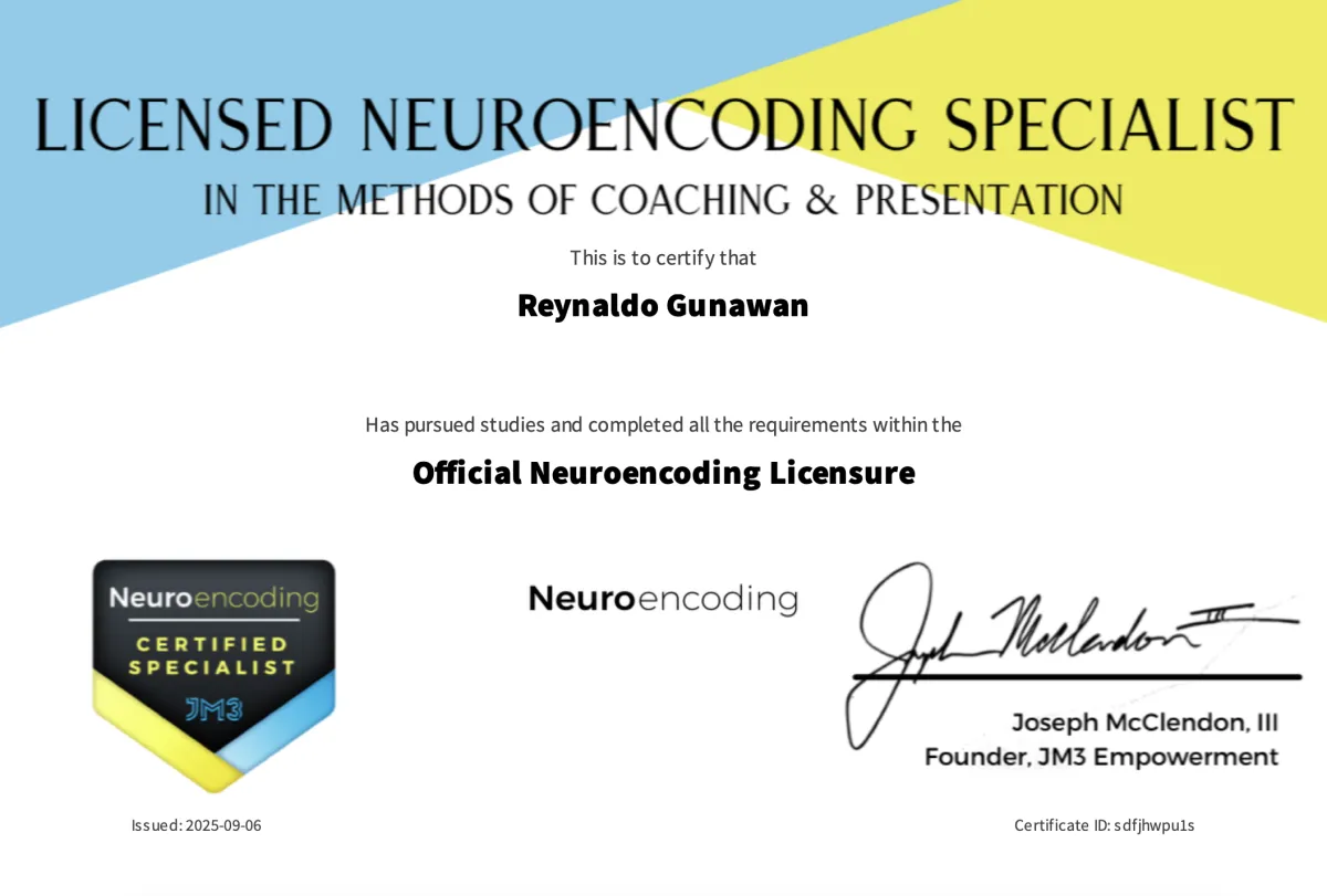 I studied Engineering for 6 years and have been in the field for 5 years. After experiencing burnout myself and finding a way out from it, I made it my mission to make sure no one has to feel the way I did. I believe this is truly my calling and I did the only way I could to equip myself even more to be qualified to help you in every way I can. Now I'm also a licensed Neuroencoding Specialist, a method to re-program our brain to get ANY result we want.